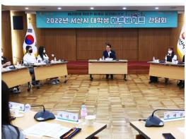 “청년들이 맘껏 꿈을 꾸고 세상을 향해 당당히 걸어나갈 수 있는 기회를 만들어 가겠다” 이완섭 서산시장이 지역 대학생들에게 이같이 강조했다.시는 19일 서산시청 중회의실에서 대학생 아르바이트생들과