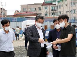 정용래 유성구청장이 19일 진잠동 복합커뮤니티센터 신축공사 현장을 방문하여 공사 추진상황에 대한 현장점검을 실시했다.