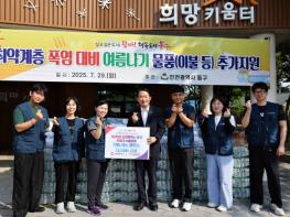 인천 동구는 지속되는 폭염으로 어려움을 겪고 있는 쪽방 주민들을 위해 추가 여름나기 물품을 지원한다고 밝혔다.구는 지난 7월10일 관내 여인숙 세대를 대상으로 여름이불, 쿨파스, 생수 각 30세트의 물품
