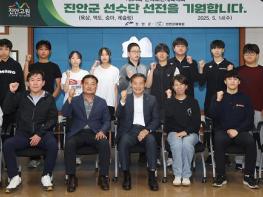 진안군이 전국 무대에 도전하는 지역 체육 꿈나무들에게 힘을 실어주며 격려의 메시지를 전했다.군은 지난 14일 군청 상황실에서 ‘제54회 전국소년체육대회’에 참가하는 진안군 선수단을 초청해 격려식을