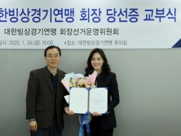 제34대 대한빙상경기연맹 회장 당선증 교부식에서 이수경 당선인이 당선증 수령 후 기념촬영을 하고 있다. / 제공: 대한빙상경기연맹[스포테이너즈=고초록 기자] 대한빙상경기연맹 제34대 회장으로…