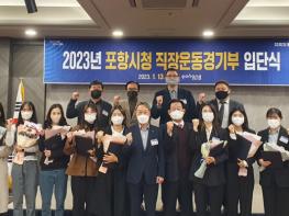 포항시는 13일 티파니웨딩에서 2023년 포항시청 직장운동경기부 입단식을 개최했다고 밝혔다.코로나19로 3년 만에 정식으로 갖게 된 이날 입단식에는 선수단과 포항시체육회 관계자 등이 참석한 가운데, 올