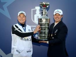 하나금융그룹이 ‘위믹스 2022 KPGA 프로골프 구단 리그’의 ‘초대 챔피언’으로 등극했다.하나금융그룹은 26일 강원 원주 소재 성문안CC IN, OUT코스(파72. 7,243야드)에서 열린 ‘위믹스 2022 KPGA 프로