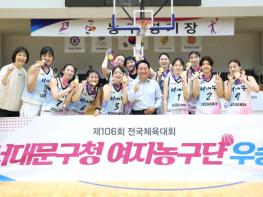 서대문구는 박찬숙 감독이 이끄는 서대문구청 여자농구단이 23일 부산대학교 경암체육관에서 열린 ‘제106회 전국체육대회’ 농구 여자일반부 결승 경기에서 경상남도 대표인 사천시청에 54대 49로 승리하며