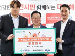 대전시는 25일 ‘류현진배 전국중학야구대회’ 창설을 위한 공동협약을 체결했다. 이날 협약식에는 이장우 대전시장, 류현진 재단법인 류현진 이사장, 김운장 대전시야구소프트볼협회 수석부회장이 참석하여