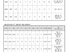 2025 신한 SOL뱅크 KBO 리그 7월 월간 MVP 후보로 총 7명의 선수가 선정됐다.투수 부문에서는 KT 고영표, 롯데 김원중, 한화 폰세, 야수 부문에서는 삼성 구자욱, 삼성 디아즈, KT 안현민, 한화 채은성이 7