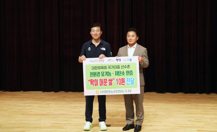 [스포테이너즈=고초록 기자] 대한체육회(회장 유승민)는 8월 5일(화) 진천 국가대표선수촌에서 「영암군·서영암농협 친환경 유기농 쌀 전달식」을 개최하고, 고품질 유기농·저탄소 인증 쌀 10톤을 전달받…