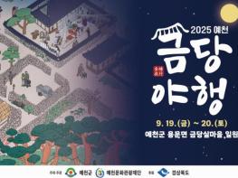 (재)예천문화관광재단은 19일부터 2일간 예천 금당실전통마을에서 ‘2025 예천 금당야행’을 개최한다고 밝혔다. 2025 예천 금당야행은 대한민국 십승지 중 하나인 금당실전통마을을 배경으로 한 대표 야간