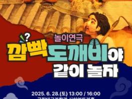(재)달성문화재단은 ‘2025 달성 아동극 시리즈’의 두 번째 공연으로 ‘깜빡도깨비야 같이 놀자’를 오는 28일 국립대구과학관 사이언트리홀에서 오후 1시와 4시에 각각 개최한다고 밝혔다. 놀이연극 ‘깜