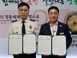 충북 영동군이 지난 26일 영동군청 군수실에서 영동소방서와 ‘2025 영동세계국악엑스포’의 성공 개최를 위한 홍보 위·수탁 협약을 체결했다. 이번 협약은 국악의 세계화 및 산업화를 목표로 하는 국악엑스