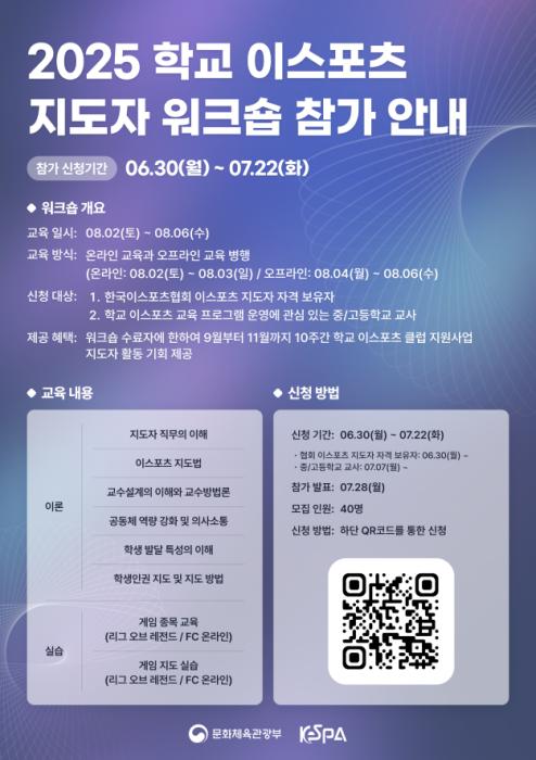 [스포테이너즈=고초록 기자] 한국e스포츠협회(이하 협회)는 학교 이스포츠 클럽 지도자 양성을 위한 ‘2025 학교 이스포츠 지도자 워크숍’의 참가자를 오는 7월 22일(화)까지 모집한다고 11일(금) 공지했다…