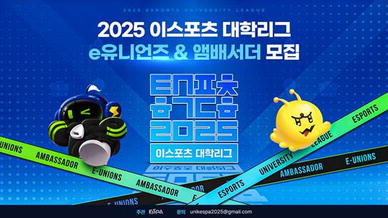 [스포테이너즈=고초록 기자] ‘2025 이스포츠 대학리그’를 함께 만들어갈 대학생 활동가 ‘e유니언즈’와 ‘앰배서더’ 모집이 본격적으로 시작됐다. 이번 모집은 리그의 콘텐츠 제작과 운영, 홍보 전반을 …