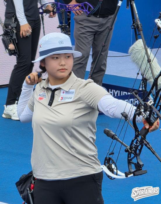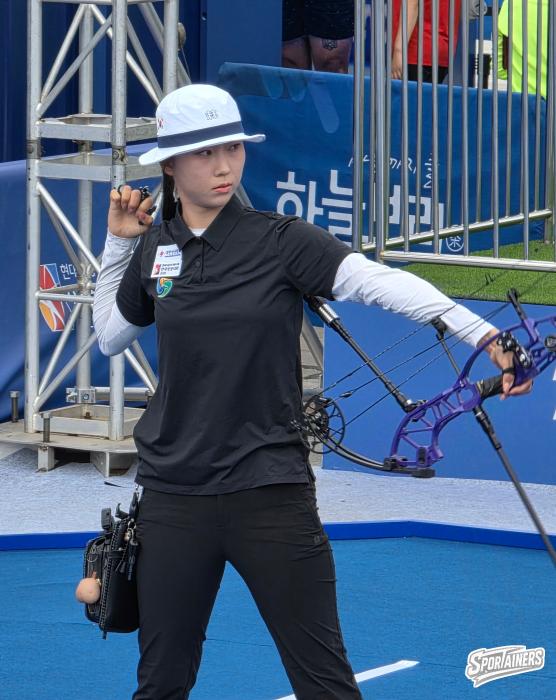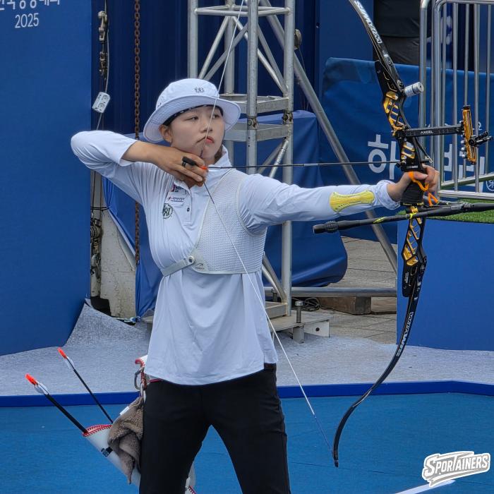 2일, 광주 5.18 민주광장에서 열린 '현대자동차 정몽구배 한국양궁대회 2025' 컴파운드 8강전 경기 중인 심수인(창원시청) / 사진=고초록 기자…