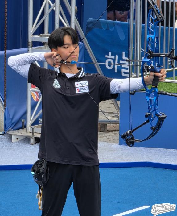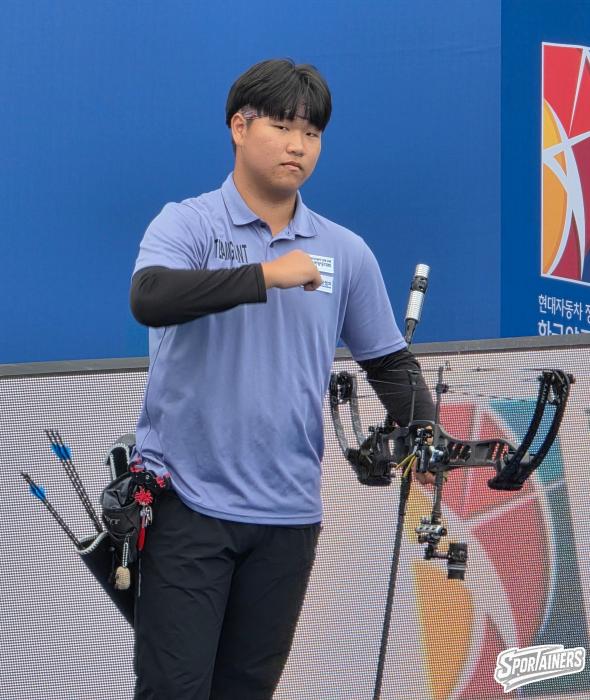 2일 광주 5.18 민주광장에서 열린 '현대자동차 정몽구배 한국양궁대회 2025' 컴파운드 남자부 8강전에 출전한 안태환(팀자이언트), 4강 진출에 성공했다. / 사진=고초록 기자…