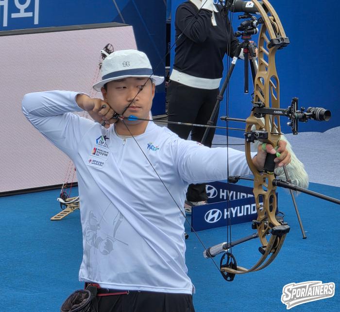 2일, 광주 5.18 민주광장에서 열린 '현대자동차 정몽구배 한국양궁대회 2025' 컴파운드 남자부 8강전에서 경기 중인 양재원(울산남구청)의 모습 / 사진=고초록 기자…