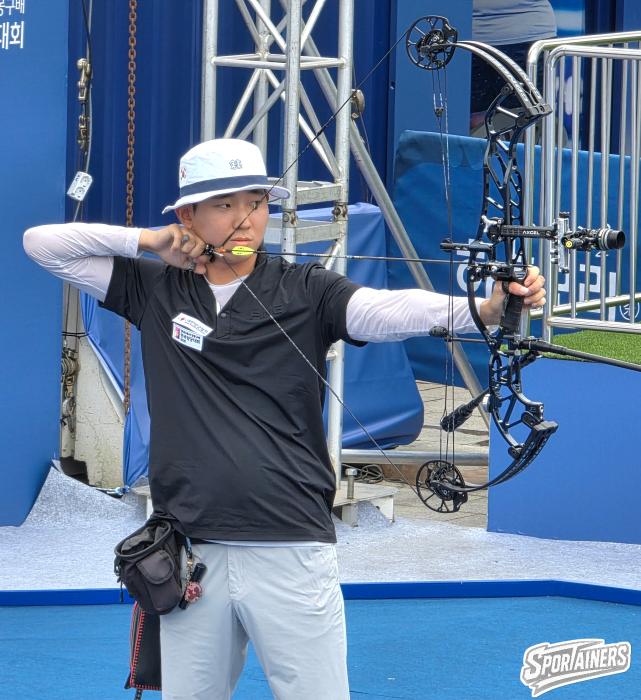2일, 광주 5.18 민주광장에서 열린 '현대자동차 정몽구배 한국양궁대회' 컴파운드 남자부 8강전에서의 윤찬영(한국체대) / 사진=고초록 기자…