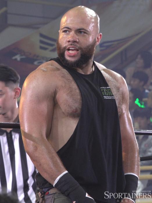 지난 10일 서울 KBS 아레나에서 열린 'PWS 레슬네이션'에서의 조던 오아시스 / 고초록 기자…