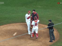 [인천=스포테이너즈] SSG 랜더스의 투수 김광현이 어제(8일) 키움와의 한국시리즈 6차전에서 4:3으로 리드중인 9회말 1아웃 상황에 등판하고 있다.#김광현 #SSG랜더스 #한국시리즈 #프로야구 #K…