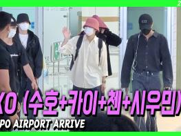 [인천=스포테이너즈] 그룹 엑소(EXO)의 멤버 수호, 카이, 첸, 시우민이 일본 도쿄에서 열린 'SMTOWN LIVE 2022 : SMCU EXPRESS' 공연을 마치고 서울특별시 강서구 김포국제공항을 통해 입국하고 있다. …
