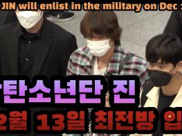 [인천=스포테이너즈] 방탄소년단(BTS)의 맏형 진(30. 김석진)이 육군으로 현역 입대한다.방탄소년단 멤버 진은 12월 13일 경기도 연천에 위치한 5사단 열쇠부대 신병교육대에 입소한다. 입소 후…