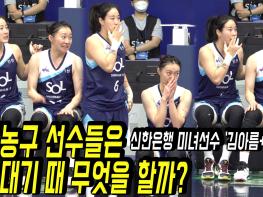[인천=스포테이너즈] 17일 인천 도원체육관에서 열린 '신한은행 SOL 2022~2023 여자프로농구 정규리그' 신한은행과 삼성생명의 맞대결에서 교체석에 앉아 대기중인 신한은행 김아름과 김진영의 귀여운 모습…