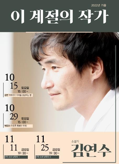 [스포츠와 엔터테인먼트의 만남 '스포테이너즈(SPORTAINERS)', 안봉준기자] 고양특례시 아람누리도서관은 오는 11월 11일과 25일, 두 차례에 걸쳐 아람누리도서관 지하1층 강의실에서'이 계절의 작가' 가을 편 초대 작가 김연수 소설가의 신작 소설 낭독회를 개최한다.