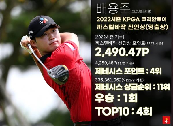 배용준(22.CJ온스타일)이 2022 시즌 ‘까스텔바작 신인상(명출상)’을 차지했다.