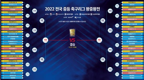 대한축구협회(KFA)는 2일 서울 신문로 축구회관에서 2022 전국중등축구리그 왕중왕전 온라인 대표자회의를 실시했다. 이 자리에서는 대회 기본정보와 대진추첨 방식을 설명한 뒤 추첨이 실시됐다.