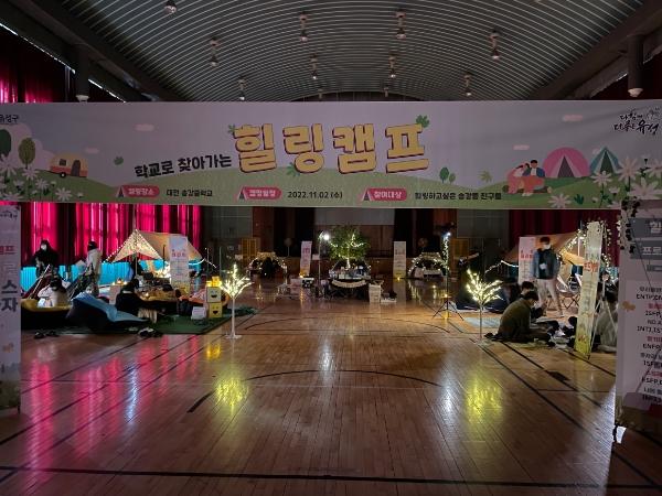 구는 학교 내에 캠핑 공간을 구성했으며, 청소년들에게 MBTI(성격유형지표)를 활용하여 각 유형에 맞는 프로그램(▲우리만의 대화방, ▲컬러테라피, ▲향기테라피, ▲보드게임 등)을 진행했다.