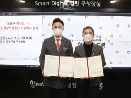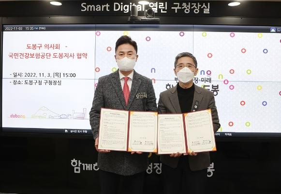 [스포츠와 엔터테인먼트의 만남 '스포테이너즈(SPORTAINERS)', 고초록기자] 도봉구가 2022년 11월 3일 구청장실에서 돌봄사각지대 및 위기가구 집중 발굴을 위한 도봉구청-건강보험공단 도봉지사, 도봉구의사회 간 업무협약을 실시했다.