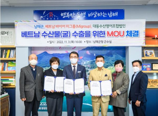 이번 협약을 통해 남해군, 대동수산, 미 그룹은 남해의 우수한 수산물이 베트남 시장에 안착할 수 있도록 상호 협력해 나갈 예정이다.