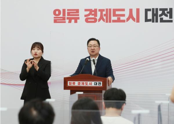 이장우 대전광역시장은 21일 시청 기자회견장에서 브리핑을 열고 방위사업청이전 관련 예산증액 등 추진계획을 밝혔다.