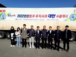 충북원예농협 충주거점산지유통센터는 7일 최근 2022년산 후지사과 20톤을 선적해 대만 수출을 시작한다고 밝혔다.