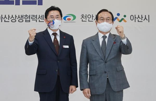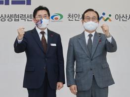 이어 “지난 시간 두 도시가 충남권 대표 도시에서 중부권 핵심 도시로 발돋움할 수 있었던 것은 상생의 동반자가 있었기 때문”이라면서 “지방자치법 개정으로 지방정부의 역할과 기능이 더욱 중요해졌고, 자치단체 간 상생과 협력은 필수가 됐다. 아산시민과 천안시민의 행복이라는 공동의 목표를 위해 고견과 지혜를 나누는 시간이 되기를 바란다”고 말했다.