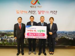 [스포츠와 엔터테인먼트의 만남 '스포테이너즈(SPORTAINERS)', 고초록기자] NH농협 서산시지부가 지난 7일 서산시 소외계층을 위한 팔도쌀 8백kg를 기탁했다.
