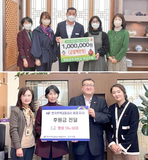 이에 앞서 공주대학교 여교수회에서도 어려움을 겪고 있는 취약계층을 위해 회원들이 성심성의껏 모은 이웃 돕기 성금 100만 원을 전달했다. 여교수회는 매년 2회씩 사회복지시설 등을 방문해 따뜻한 이웃사랑을 실천하고 있다.