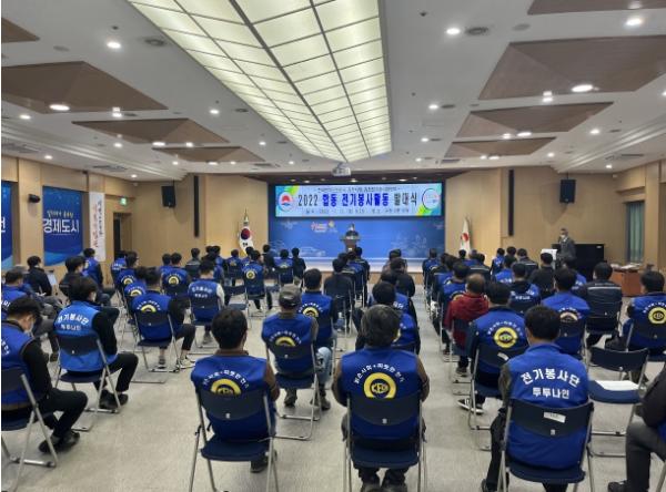 김천전기공사협의회, 한국전기안전공사 경북서부지사 및 김천시청 전기직 공무원 모임 투투나인이 함께 모여 발대식을 하고 관내 저소득 60가구를 대상으로 합동 전기 봉사활동을 실시했다. 이날 발대식에는 이동형 김천시청 경제관광국장, 경수철 한국전기안전공사 경북서부지사장, 그리고 멀리서 경북전기공사협회 조선관 회장님이 참석하여 자리를 빛내 주었다.