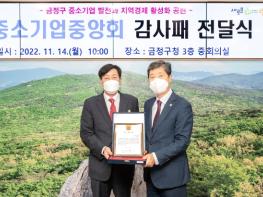 [스포츠와 엔터테인먼트의 만남 '스포테이너즈(SPORTAINERS)', 고초록기자] 김재윤 금정구청장이 부산중소기업중앙회로부터 중소기업 발전 및 지역경제 활성화에 공헌한 노고에 기여한 바를 인정받아 중소기업중앙회 감사패를 받았다.