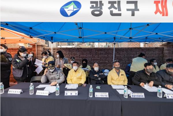 먼저 14일 구청 기획상황실에서 ‘토론훈련’을 실시, 재난안전대책본부장인 김경호 구청장을 비롯한 13개 실무반과 광진소방서, 경찰서 등 12개 유관기관이 참석해 협업 체계를 구축했다.