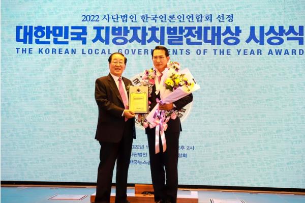 시에 따르면 (사)한국언론인연합회가 주최하고 국회, 국토교통부, 문화체육관광부가 공동후원하는 지방자치발전대상은 행정혁신, 지역경제 활성화, 일자리 창출 등 지방자치 발전과 경쟁력 향상에 이바지한 지방자치단체에 수여하는 상이다.