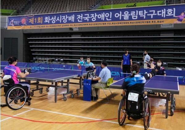 화성시가 지난 20일 화성종합경기타운에서 ‘제1회 화성시장배 전국장애인어울림탁구대회’를 개최했다.