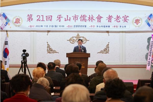 [스포츠와 엔터테인먼트의 만남 '스포테이너즈(SPORTAINERS)', 안봉준기자] 아산시 유림회가 지난 21일 온양관광호텔에서 제21회 온양·아산·신창 향교 합동 유림 기로연을 개최했다.
