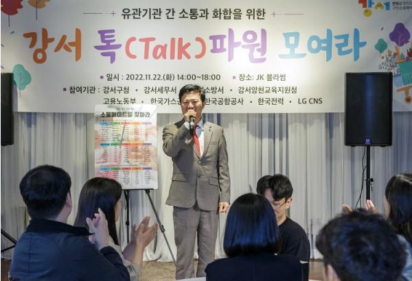 김태우 구청장은 “오늘처럼 격식 없는 자리를 통해 새로운 사람들을 만나고 소통하다 보면 좋은 친구도 될 수 있고 소중한 연인이 될 수도 있을 것”이라며 “또한 이자리가 기관 간 네트워크 형성에도 도움이 되는 소중한 시간이 되길 기대하며, 앞으로도 젊은 직원들과 새로운 방식으로 다양하게 소통하는 자리를 마련해 나가겠다”라고 말했다.