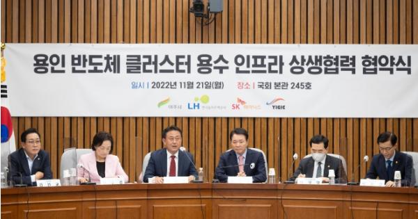 [스포츠와 엔터테인먼트의 만남 '스포테이너즈(SPORTAINERS)', 고초록기자] 여주시와 SK하이닉스가 11월 21일 국회 본관에서 '용인 반도체 클러스터 일반산업단지' 공업용수 공급사업의 성공적 조성과 상생협력을 위한 협약식을 가졌다. 민선8기 여주시가 출범과 함께 용인 반도체 클러스터의 일방적인 공업용수의 공급에 문제를 제기하며 관계기관과 협상에 나선 지 석 달만이다.