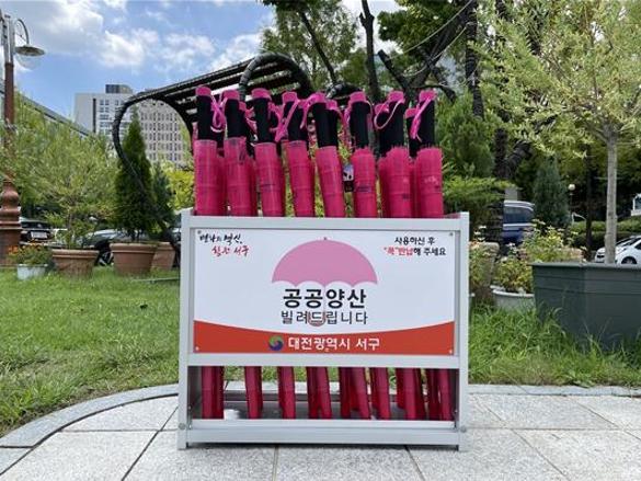 대전 서구는 야외활동으로 인한 온열 질환 발생 예방을 막기 위해 폭염대책기간인 오는 9월 말까지 ‘공공양산 대여소’를 운영한다고 21일 밝혔다.