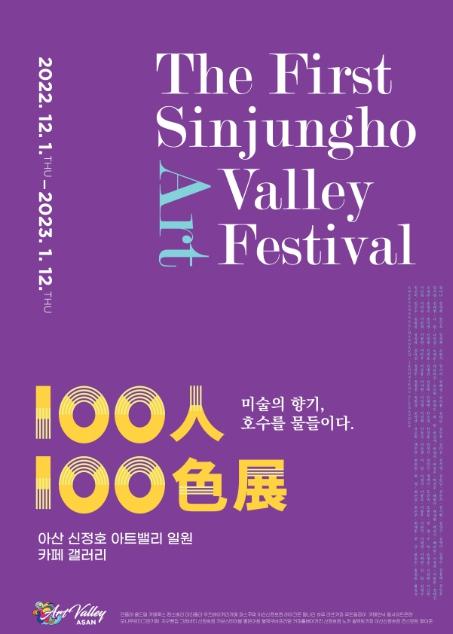 아산시는 12월 1일부터 2023년 1월 12일까지 43일간 신정호 일대 카페에서 ‘제1회 신정호 아트밸리 아트페스티벌: 100인 100색전’을 개최한다고 밝혔다.