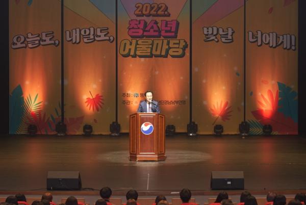 고3 수험생과 함께하는 2022년 청소년어울마당 행사는 관내 댄스팀 ‘제이킹덤’의 화려한 식전공연과 개회식이 시작됐다. 이어 각 학교 고3 학생들이 직접 참여하는 댄스 및 노래로 열정과 에너지를 발산하는 무대가 마련됐다.