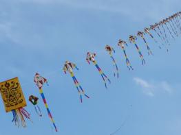특히 한국 방패연의 대가 고훈 우상욱 명장의 방패연을 주요 내빈들이 하늘로 직접 띄우며 액운을 날려보기도 하고, 전국 초청연사들의 줄연과 비행 연 시연, 그리고 해미읍성 연과 호랑이 연, 독도 연 등 각종 창작 연이 하늘에 펼쳐지며 장관을 이뤘다.