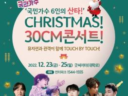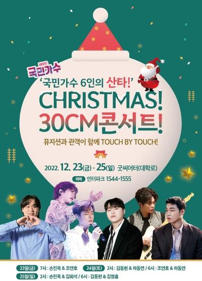 '국민가수 6인의 산타 Christmas 30cm 콘서트'는 김동현, 손진욱, 조연호, 김희석, 김영흠, 하동연이 일상에 지친 국민을 위로하고자 30cm 근접한 무대로 관객들을 만나는 공연이다. 호소력 짙은 감성과 강력한 퍼포먼스, 달콤한 세레나데 등 다채로운 무대가 펼쳐진다.