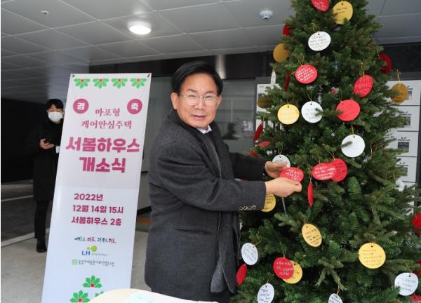 이번 개소식에는 박강수 마포구청장, LH 서울지역본부장, 시·구의원, 서봄하우스 입주민, 마포구 사회적경제 네트워크 구성원 등 40여 명이 참석해 서봄하우스의 설치과정을 담은 영상을 시청하고 축하메세지를 단 트리를 점등했다. 또한 마포구와 LH가 함께 입주민 대표에게 입주선물을 전달하는 뜻깊은 시간도 가졌다.